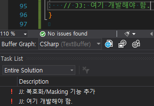 ctrl + \, ctrl + T 단축키를 이용하면 다음과 같이 Task List를 볼 수 있다.