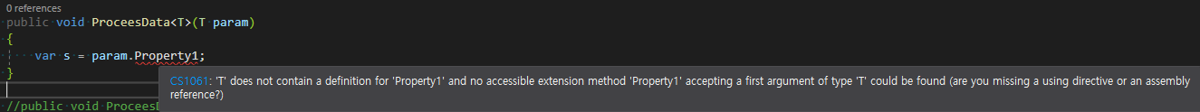 Generic Method를 생성했는데 T.Property로 접근할 수 없다.