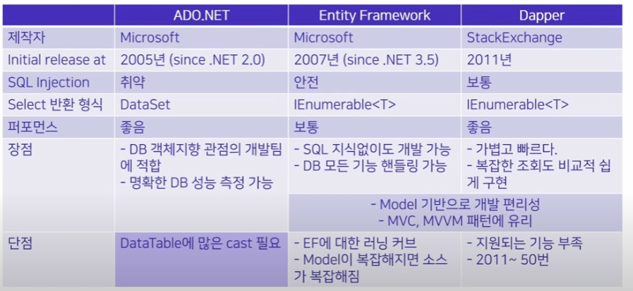 - Dapper가 전반적인 성능이 가장 좋았다.