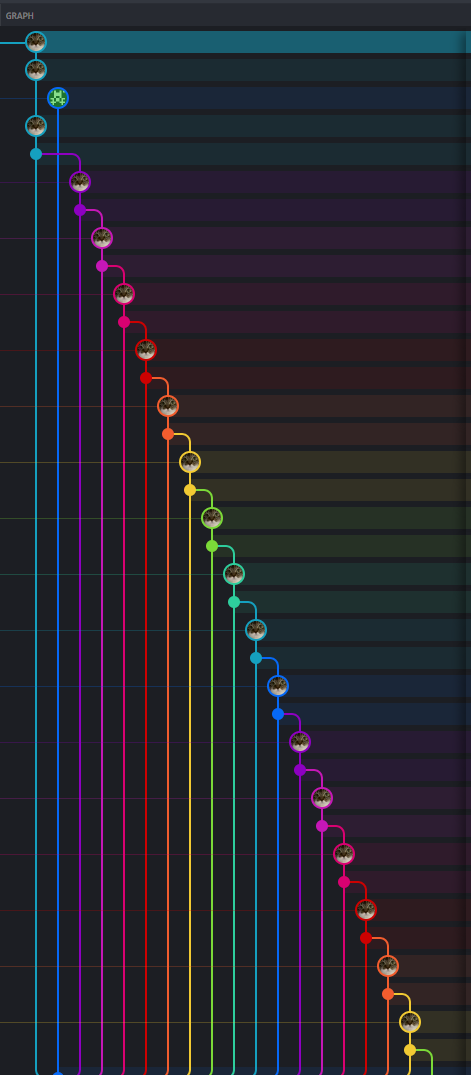 큰 작업을 여러 PR로 나누어 진행해야 하다보니 멋있는 그래프가 나왔다.