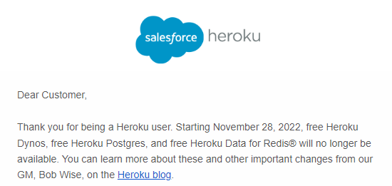 2가지 애플리케이션을 Heroku 서버에서 돌리고 있었는데 메일을 받았다.