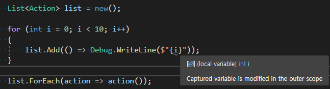 그리고 이 경우 로컬 변수 i 를 저장하기 위해서 로컬 변수의 값이 아니라 로컬 변수의 참조를 저장한다.
