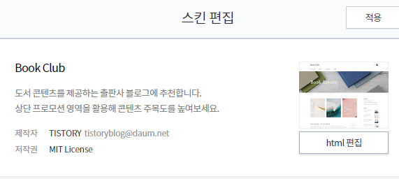 티스토리 - 블로그 관리 > 꾸미기 > 스킨 편집으로 진입해서 html 편집을 클릭합니다.