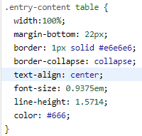 style.css에 entry-content 클래스의 하위 table에 text-align: center로 설정되어있군요.