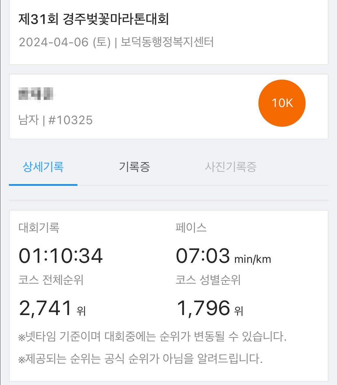 아직 4분 이상 연속으로 달리기는 한 번도 해보지 않은 채로 대회날이 되었다.