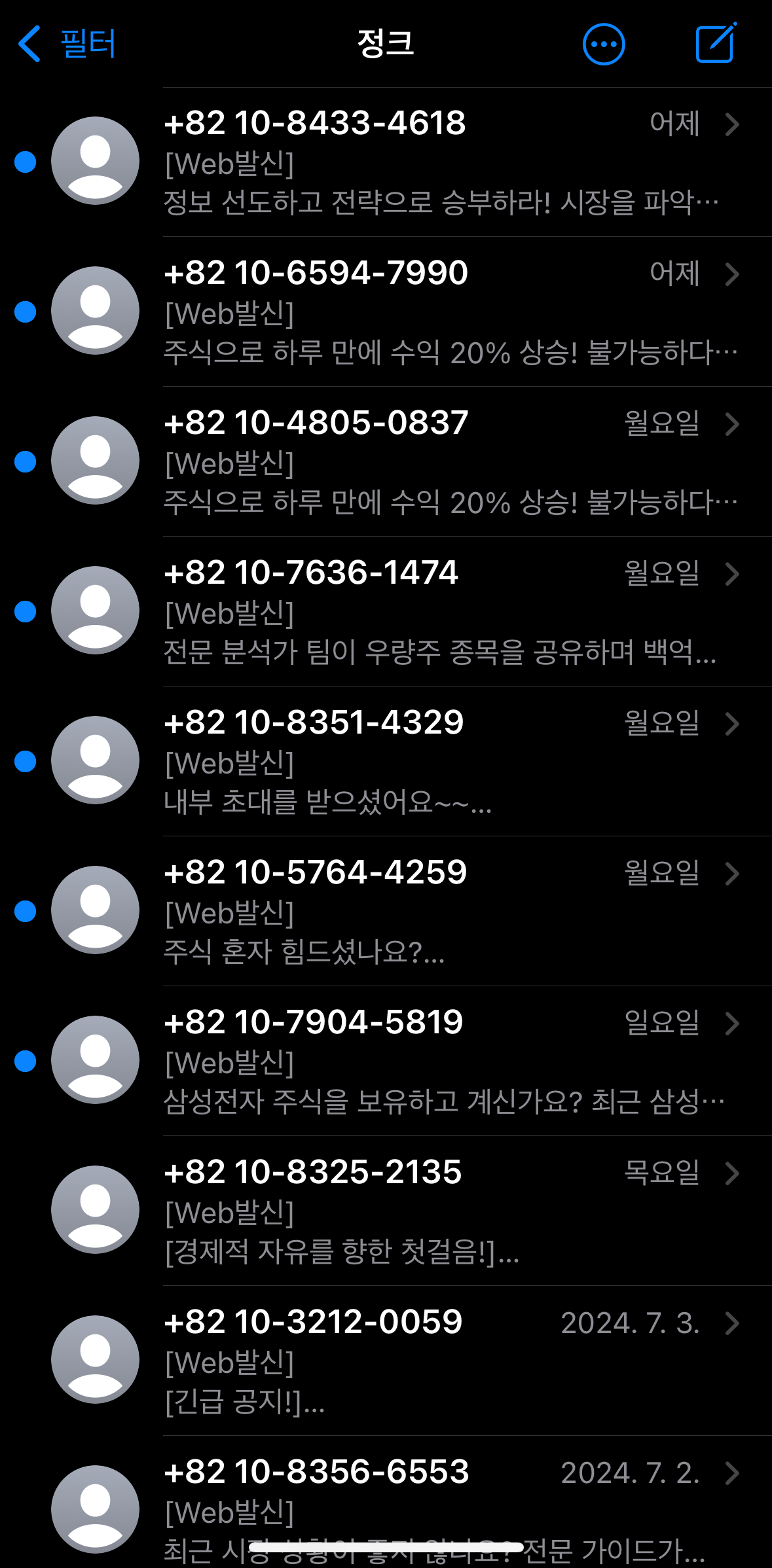 연이은 해킹과 오픈소스가 되어버린 내 개인정보로 인해 스팸문자가 하루에 너무 많이 온다.