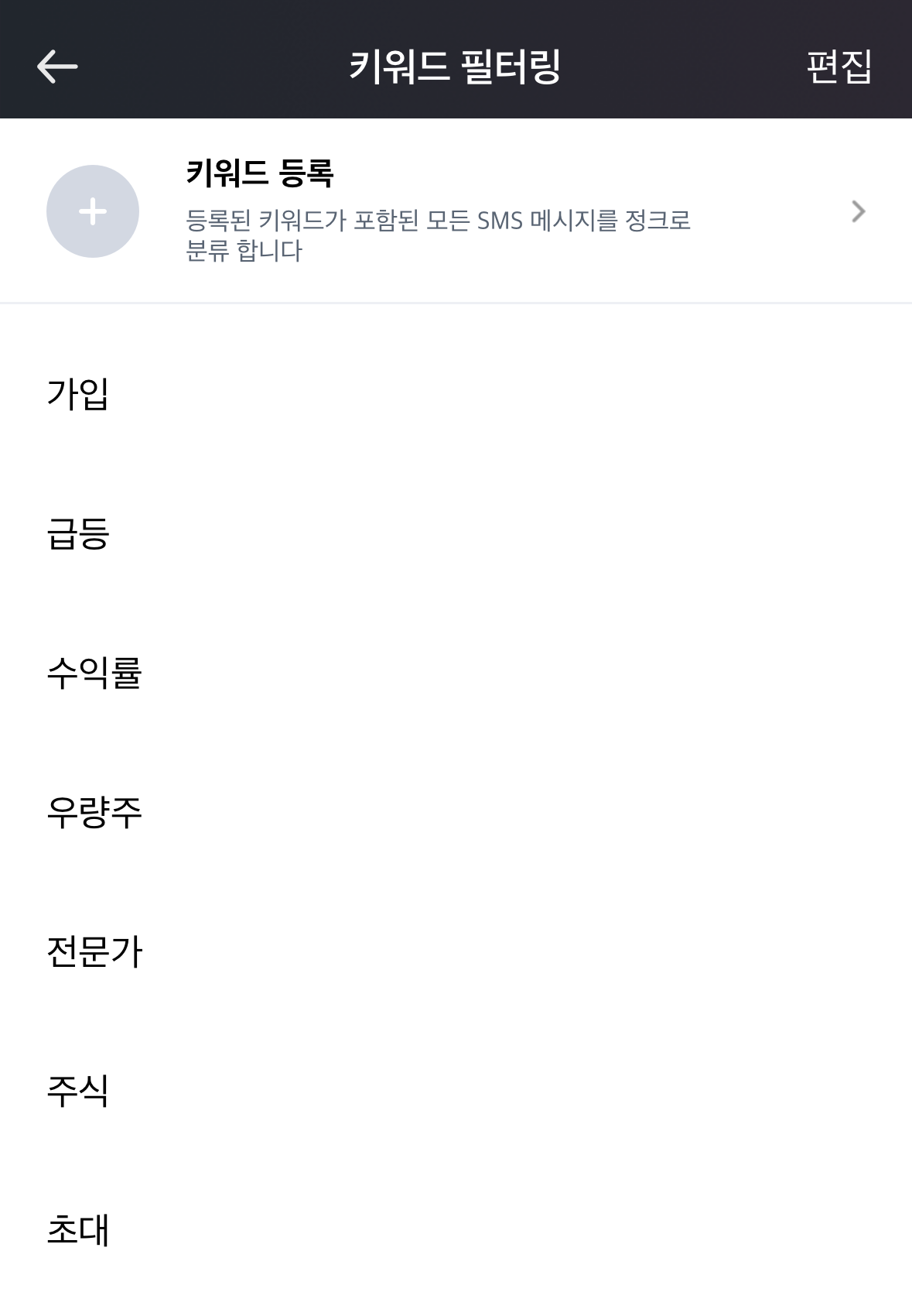 나는 주식 리딩방 문자가 많이 오는 편이어서 다음과 같이 등록해 두었다.