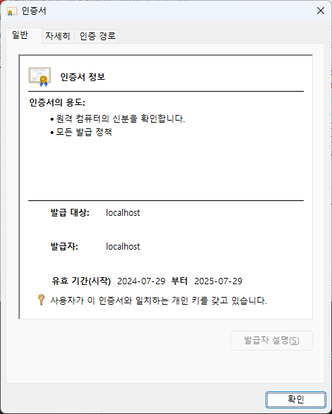 다음과 같이 오늘 생성된 인증서가 등록된 것을 확인할 수 있었다.