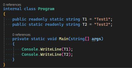 readonly static, static readonly 모두 사용해도 별도의 warning이 없었다.
