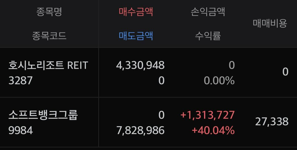 9984를 일부 정리하고 3287을 매수함으로써 구상했던 J리츠 포트폴리오를 일단 1주씩 매수할 수 있었다.