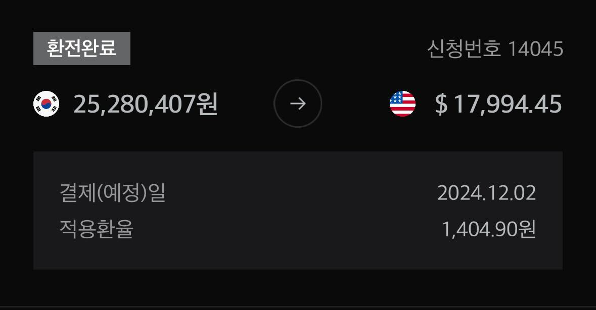 바로 전날 12월 2일에 2,500만원을 원 ⇒ 달러로 환전 해두었는데 다행이었다.