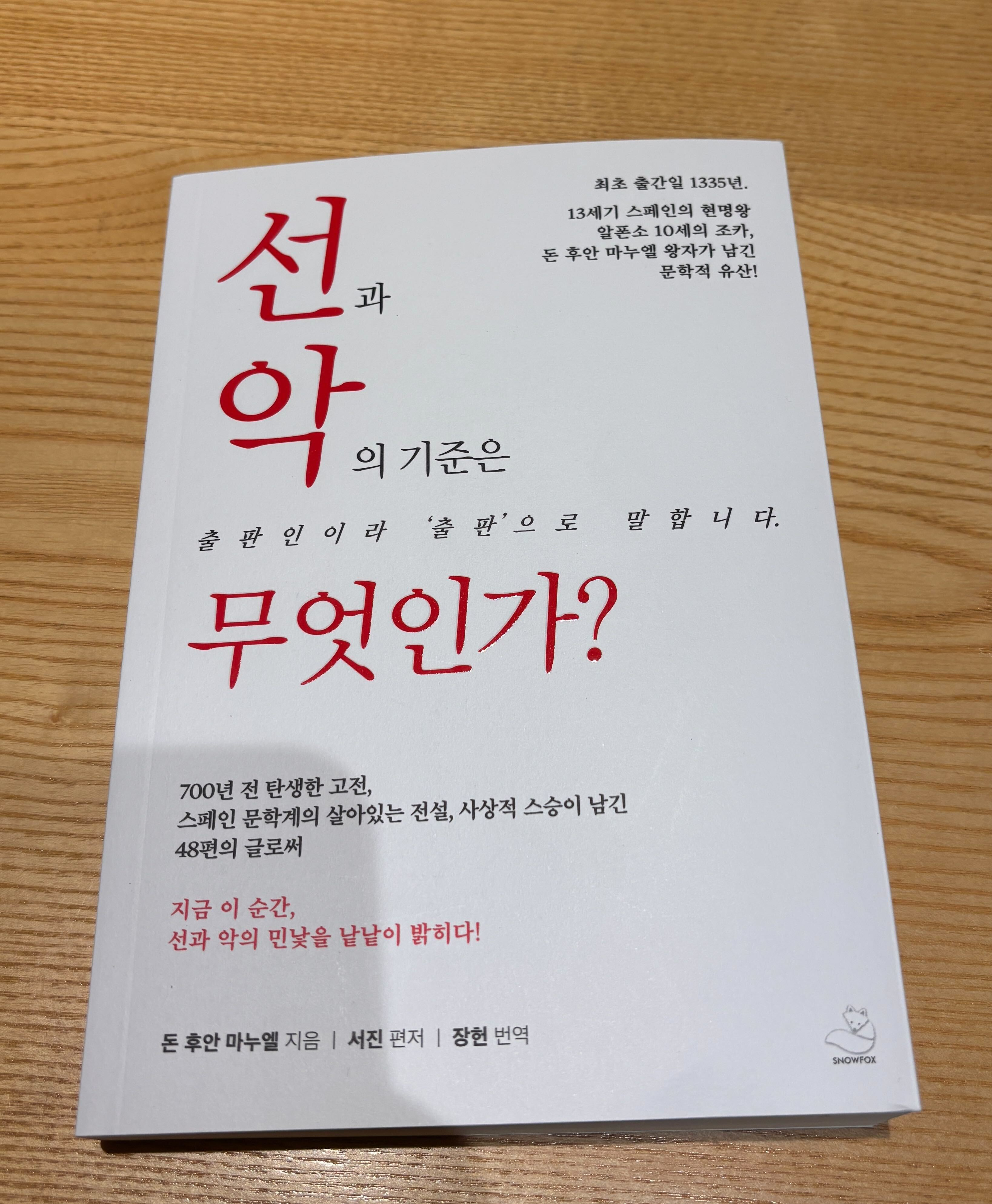 선과 악의 기준은 무엇인가? | 출판도 책에 인쇄된 ‘글’로 시대정신에 참여 최초 출간일 1335년 스페인 알폰소 10세 국왕의 친조카 48편의 선과 악을 가려보는 어른 동화이 책은 표지와 본문 제