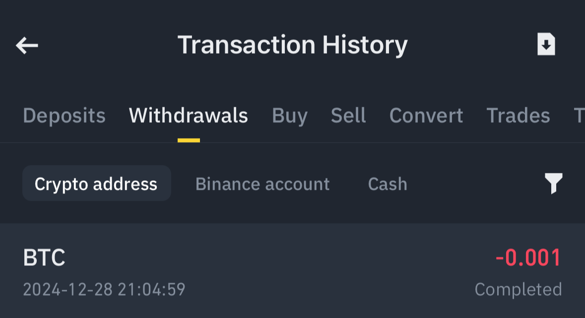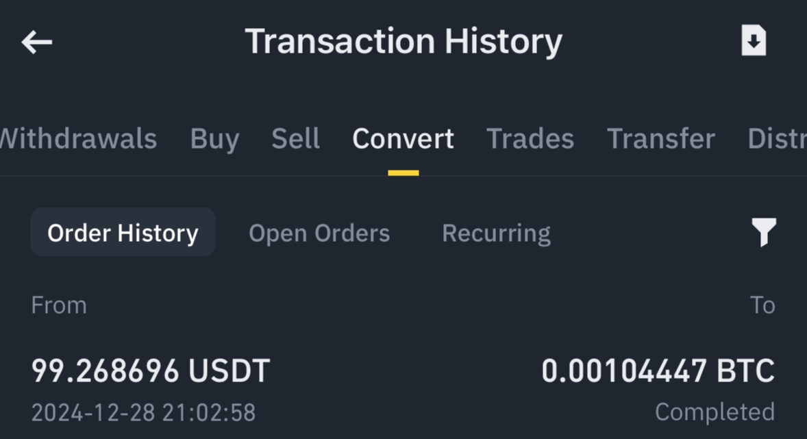 바이낸스에서 USDT에서 BTC로 convert 한다.
