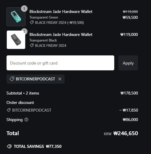 그 이후로 셀프 커스터디를 해야겠다는 생각이 강해졌고 Blockstream의 Jade 콜드 월렛을 주문했다.