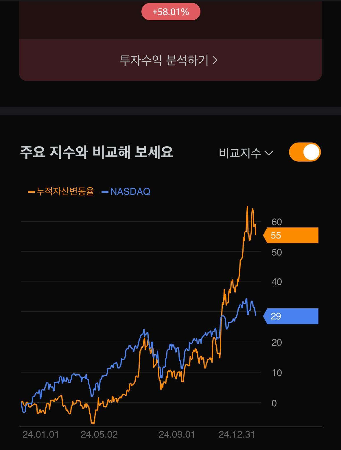 수익률이 2년 연속으로 42%, 58% 였으니 2023년 1월 이후로 2년 동안 수익률은 100%가 넘는다.