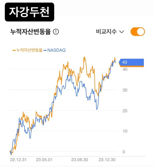 2023년 수익률은 찾아보니 42% 정도였던 것 같다.