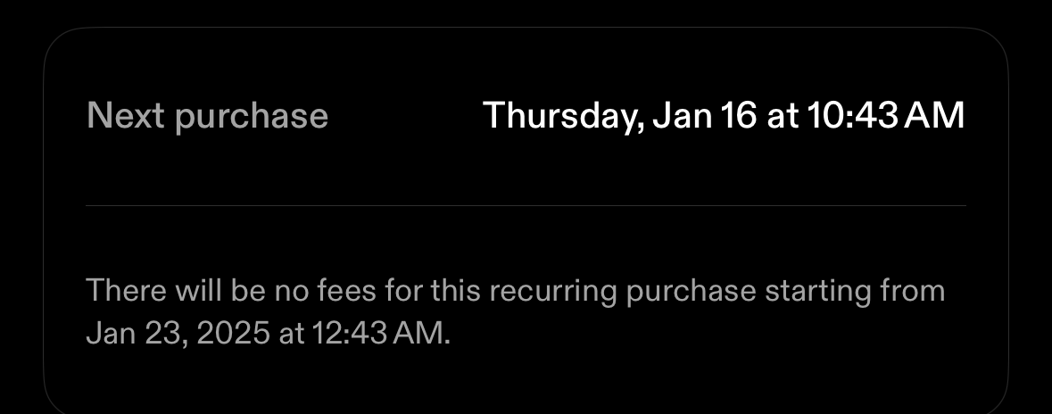 4번: 스트라이크에서 recurring purchase를 설정하고 일주일 유지하면 그 이후로는 수수료가 발생하지 않는다.
