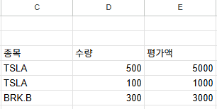 TSLA가 여러 계좌에 있었기 때문에 row에 나눠져 있었고 합쳐서 집계했어야 했다.
