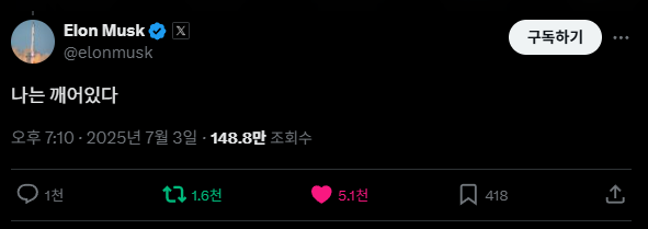 나도 깨어있다. 테슬라 덕분에 머리가 깨어져있다.