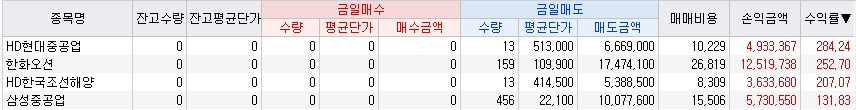 최근 한 달 동안 이 계좌에서 조선주를 모두 정리했다.